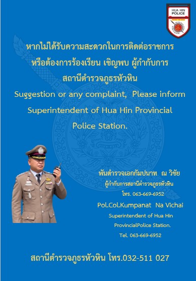 ช่องทางแจ้งเรื่องร้องเรียนการทุจริตของ สถานีตำรวจภูธรหัวหิน